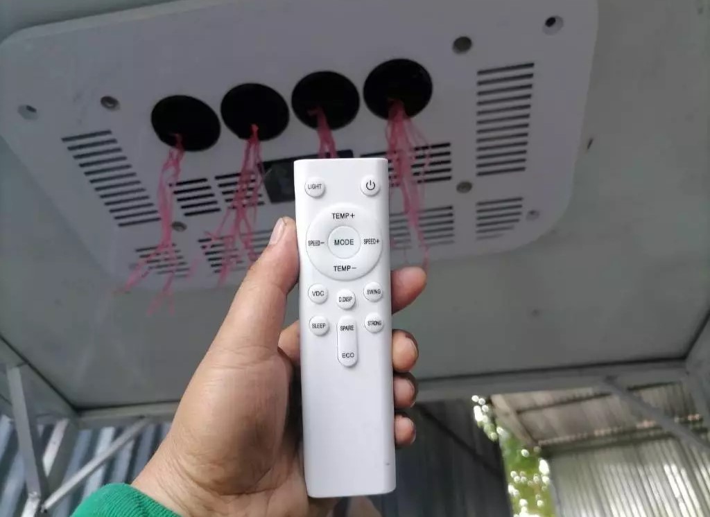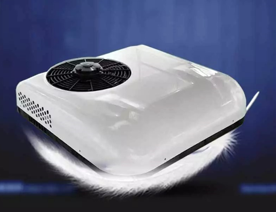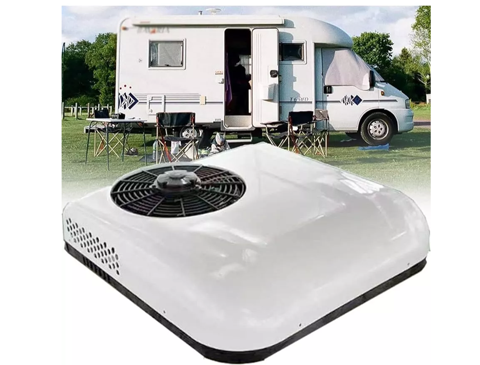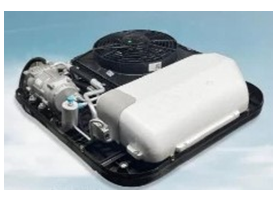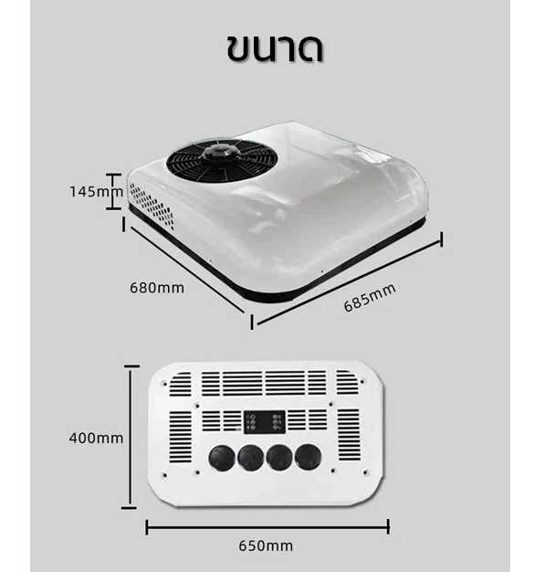 แอร์หลังคารถ เครื่องปรับอากาศแบบติดตั้งบนหลังคา สีขาว ไฟฟ้า DC แรงดันไฟฟ้าที่รองรับ 12 โวลต์ กระแสไฟฟ้ารองรับ 10-40 A กำลังไฟสูงสุด 850 W กำลังทำความเย็น 2200 W/7506 BTU น้ำหนักสุทธิ 25.5 kg